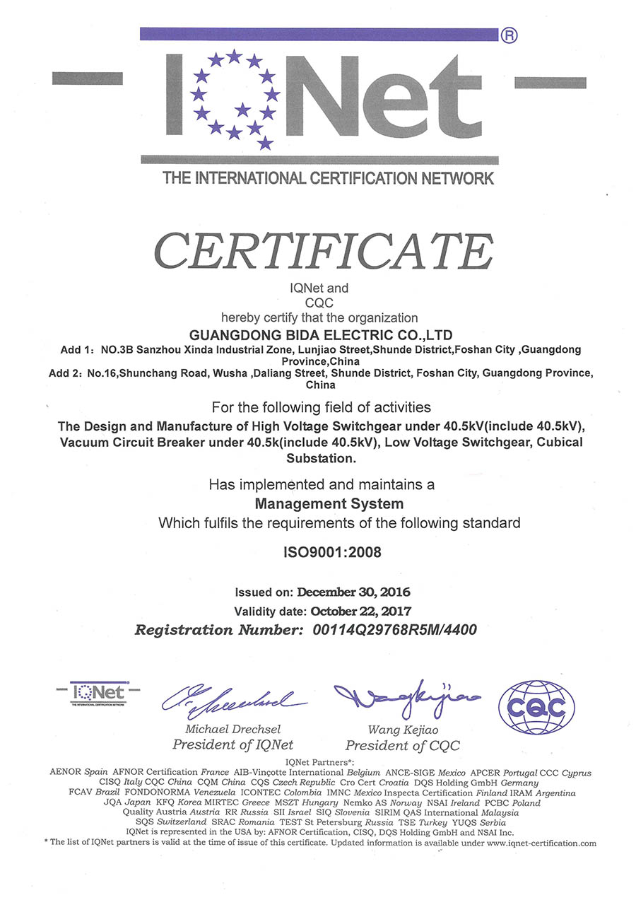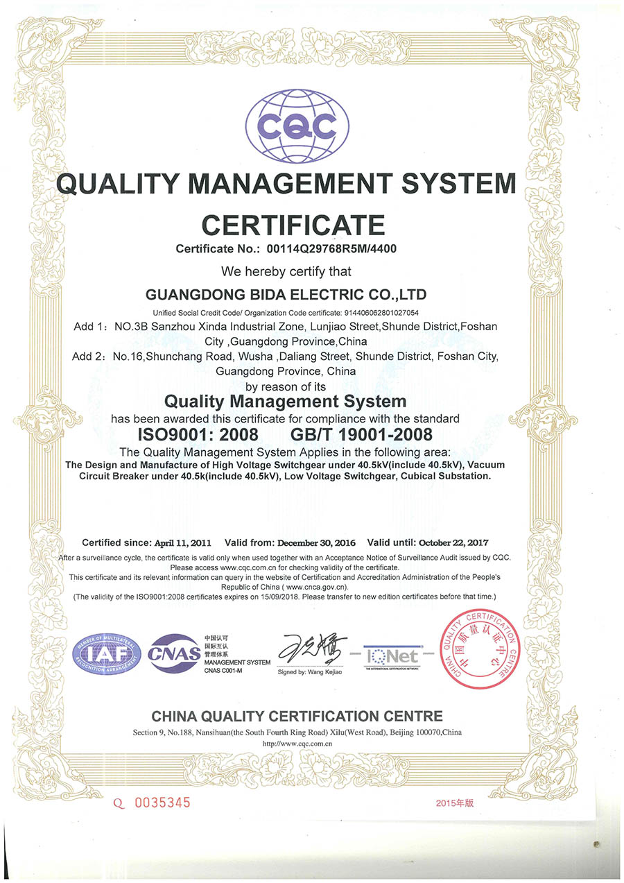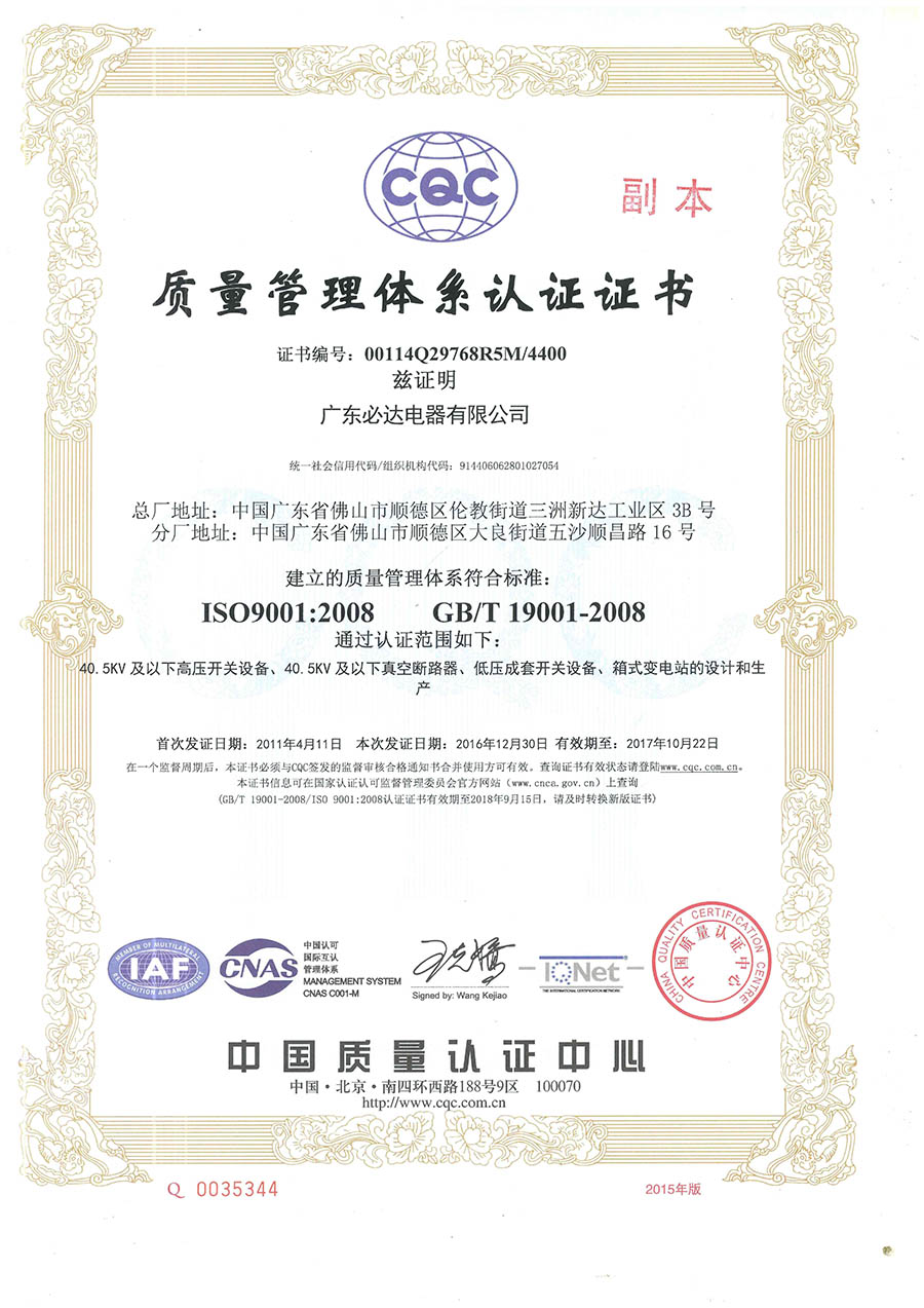 质量管理体系认证证书