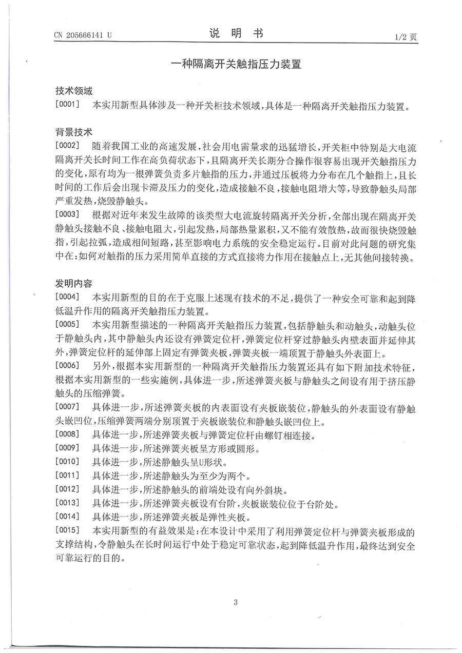 31.一种隔离开关触指压力装置-实用新型专利证书(ZL201620530953.3)2016.06.04