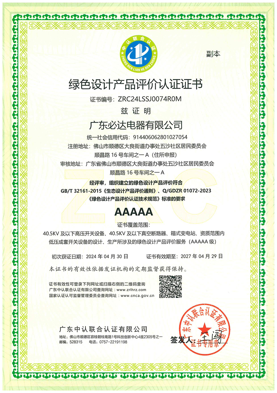 绿色设计产品评价认证证书2024.4.30-2027.4.29